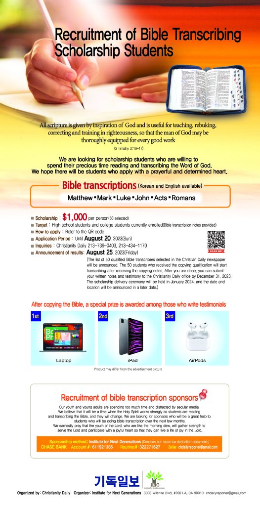 처음 시작은 단순히 장학금을 전달하는 목표에서 시작했다. 우리는 학생들의 참여와 성경을 쓰는 여정을 통해서 우리들의 생각이 틀렸다는 것을 인정하기 시작했다. 성경을 쓰는 것은 단순히 장학금이 목표가 아니라 우리들의 자녀들이 하나님을 만나는 시간이었고 회심이 시간이었음을 깨닫기 시작했다. 하나님과 함께 하는 아름다운 여정에서 변화를 경험했고 막연히 어리다고만 생각했던 그들이 믿음의 군사였음을 보게되었다. ING ORG는 희망을 보았고 앞으로도 계속 이 사역을 해야하는 사명을 깨닫게 되었다.